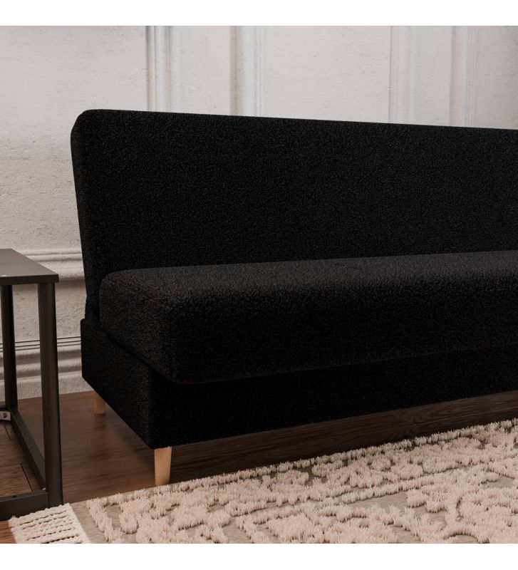 Kanapa ELDA 195 cm to elegancki i funkcjonalny mebel, który idealnie sprawdzi się w każdym wnętrzu. Dzięki kompaktowym wymiarom doskonale pasuje zarówno do salonu, sypialni, jak i pokoju młodzieżowego. Po rozłożeniu tworzy wygodną powierzchnię spania o wymiarach 194 × 116 cm, a praktyczny schowek pod siedziskiem pomieści pościel, koce lub poduszki. To idealne połączenie stylu, komfortu i praktyczności.