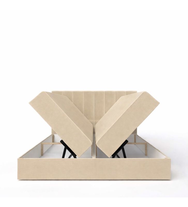 - Dwie pojemne skrzynie na pościel: duża przestrzeń magazynowa pod ramą łóżka z automatem sprężynowym ułatwia podnoszenie i dostęp do zawartości.