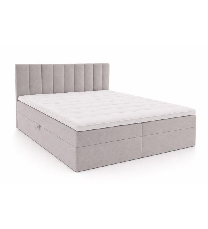 Łóżko kontynentalne z dwoma pojemnikami, materacem i topperem BERGAMO 160x200 Szare – komfort i funkcjonalność