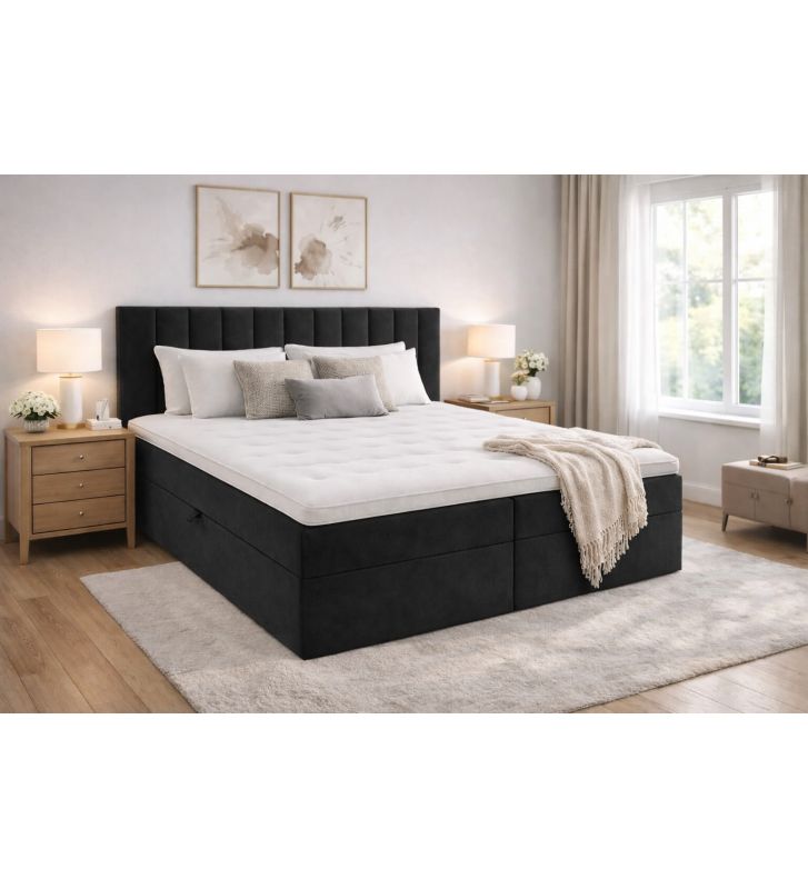 - Dwie pojemne skrzynie na pościel: Przemyślane przechowywanie z automatem sprężynowym ułatwia dostęp do pościeli i oszczędza miejsce w sypialni; skrzynie zwiększają funkcjonalność łóżka.