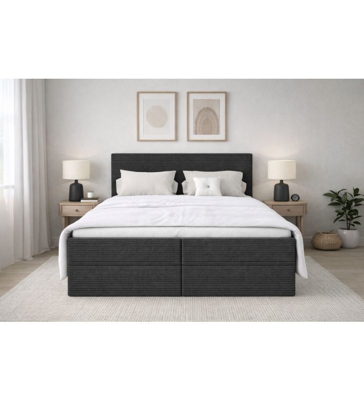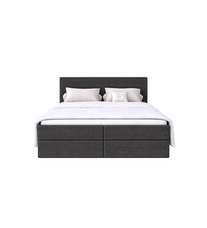 Łóżko kontynentalne z dwoma pojemnikami, materacem i topperem Soho 140x200 Sztruks Grafitowe — komfort i praktyczne przechowywanie