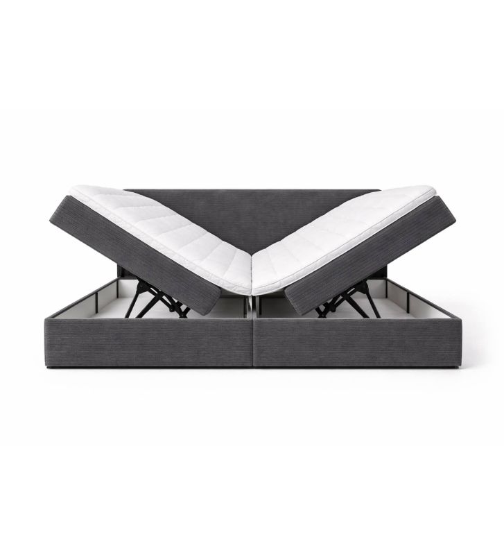 Łóżko kontynentalne z dwoma pojemnikami, materacem i topperem Soho 120x200 Sztruks Grafitowe