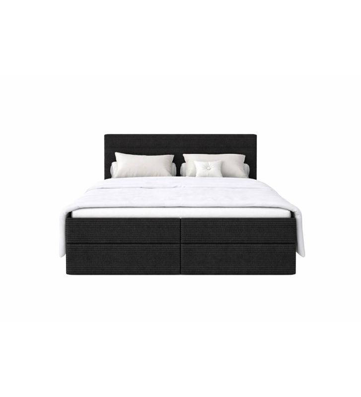 Łóżko kontynentalne z dwoma pojemnikami, materacem i topperem Soho 120x200 Sztruks Czarne