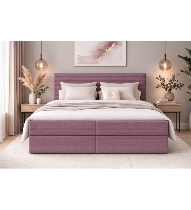 Łóżko kontynentalne z dwoma pojemnikami, materacem i topperem Soho 120x200 Sztruks Różowe