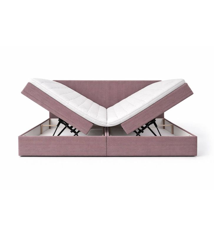 Łóżko kontynentalne z dwoma pojemnikami, materacem i topperem Soho 140x200 Sztruks Różowe – maksymalny komfort snu