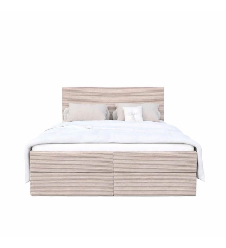 Łóżko kontynentalne z dwoma pojemnikami, materacem i topperem Soho 180x200 Sztruks Beżowe