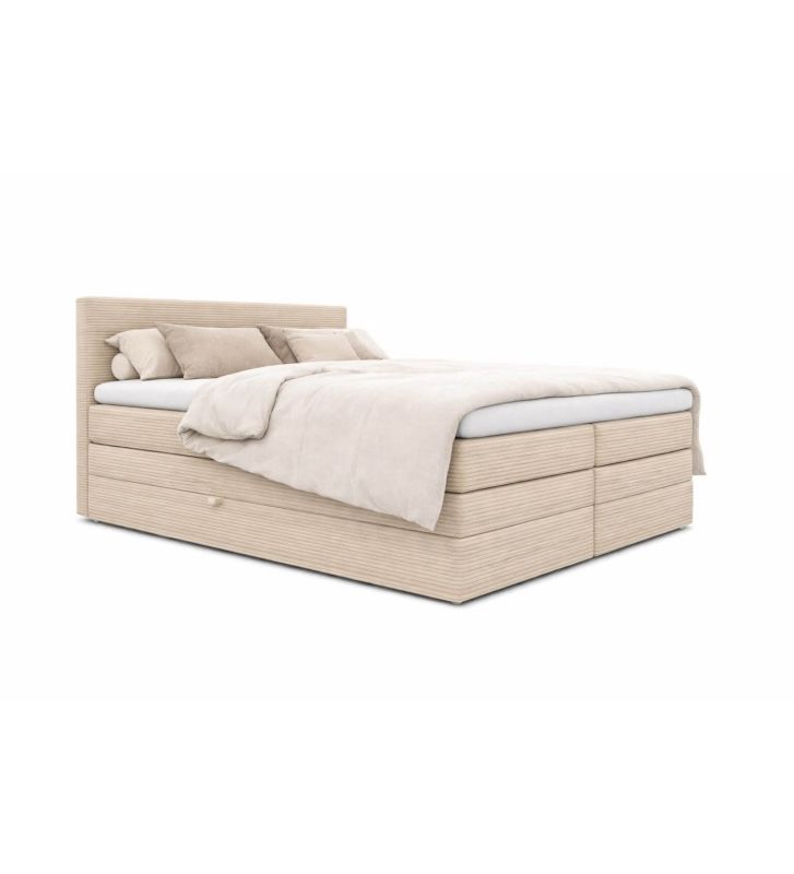 - Dwie pojemne skrzynie na pościel: Wbudowane skrzynie oferują miejsce na przechowywanie pościeli i dodatków; wyposażone są w automat sprężynowy, co ułatwia otwieranie i dostęp do zawartości bez nadmiernego wysiłku.