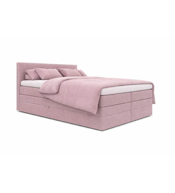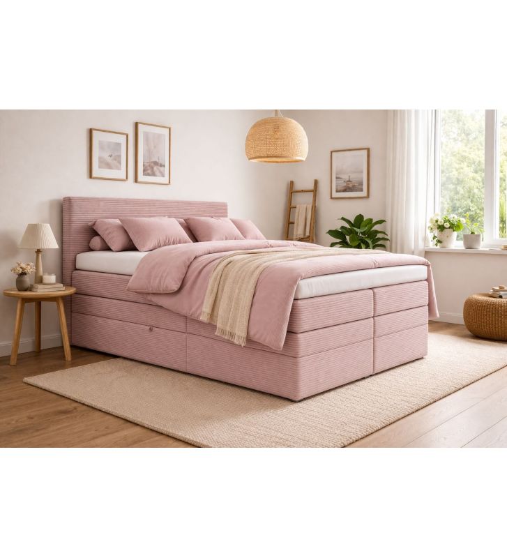 - Pojemne skrzynie na pościel: Dwie skrzynie zapewniają miejsce do przechowywania pościeli i sezonowych tekstyliów. Mechanizm ze sprężynowym automatem ułatwia otwieranie i dostęp do zawartości.