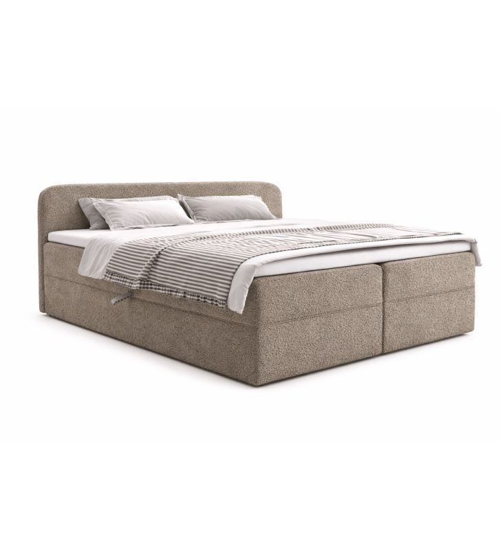 Łóżko kontynentalne z dwoma pojemnikami, materacem i topperem Malaga 200x200 Boucla Ciemny Beż — elegancja z materacem bonellowym