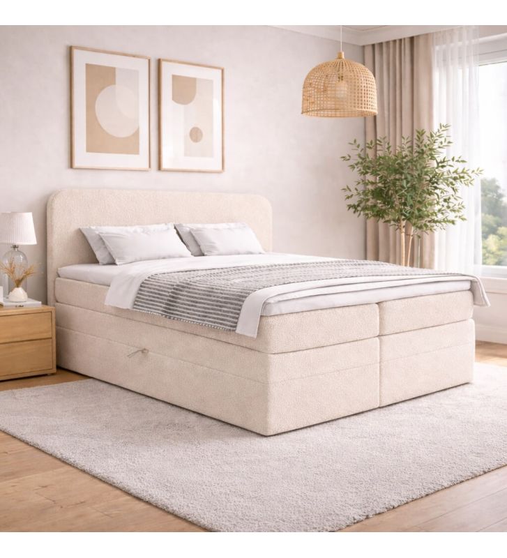 Łóżko kontynentalne z dwoma pojemnikami, materacem i topperem Malaga Duo140x200 Boucla Beżowe