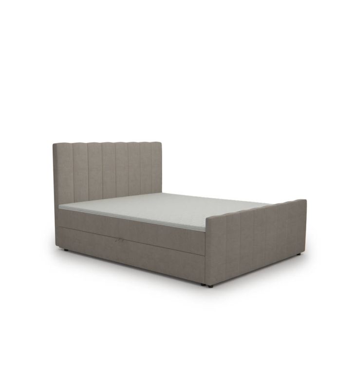 Łóżko kontynentalne, z dwoma pojemnikami, materacem i topperem Bergamo Plus 180x200 Beżowe