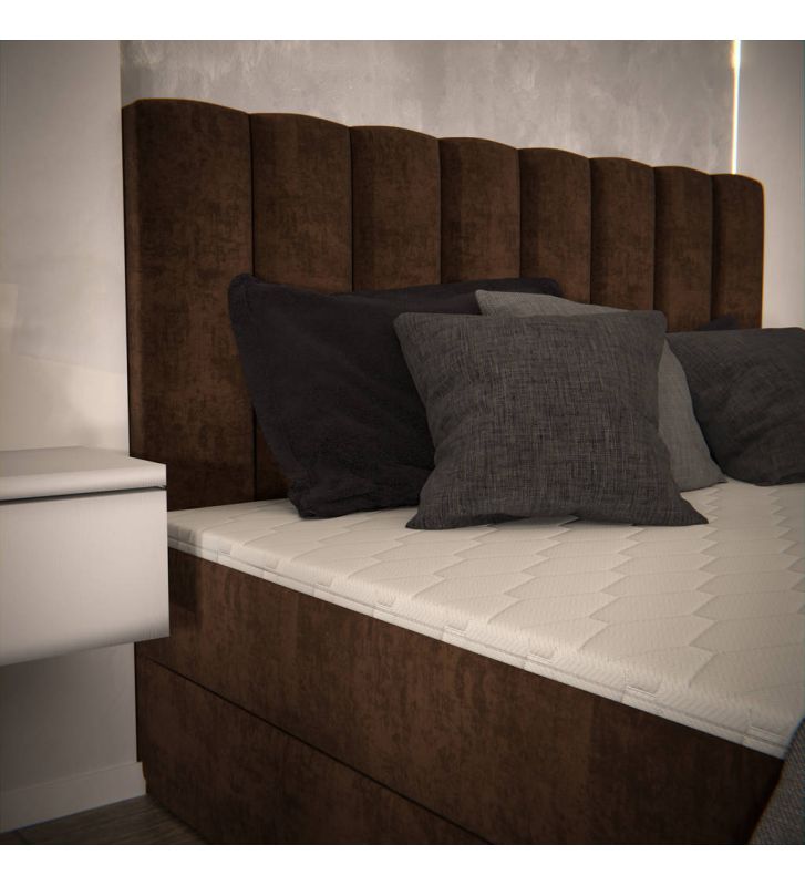 Łóżko kontynentalne BERGAMO PLUS z dwoma pojemnikami i to propozycja łącząca funkcjonalność z eleganckim wykończeniem. Model dostępny w rozmiarze 180x200 cm oferuje powierzchnię spania 180x200 cm oraz zestawny topper w zestawie, który eliminuje przerwę między materacami. W skład wyposażenia wchodzą dwie pojemne skrzynie na pościel z automatem sprężynowym, co zwiększa praktyczność mebla.