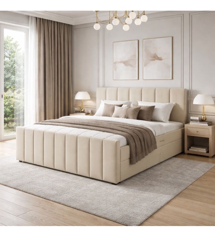 Łóżko kontynentalne, z dwoma pojemnikami, materacem i topperem Bergamo Plus 160x200 Beżowe