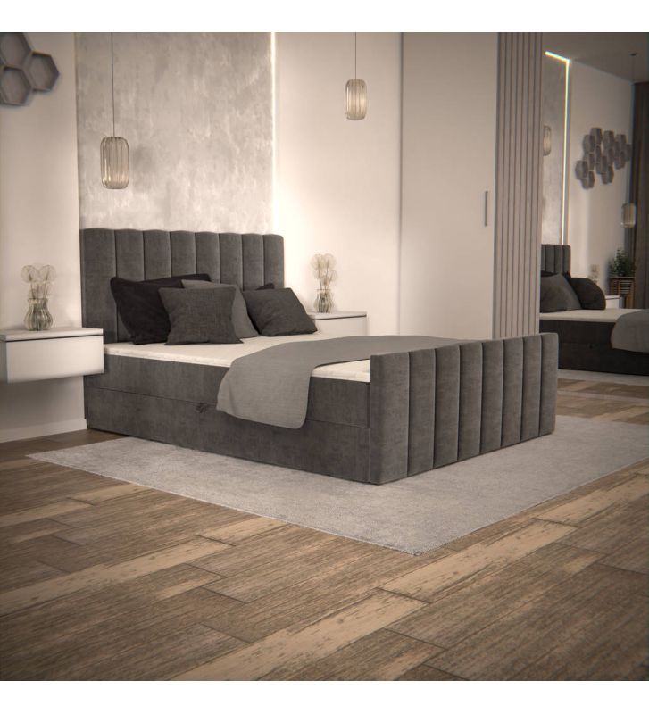 Łóżko kontynentalne, z dwoma pojemnikami, materacem i topperem Bergamo Plus 160x200 Grafitowe