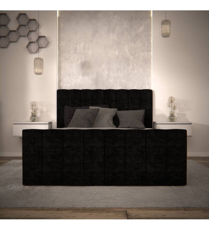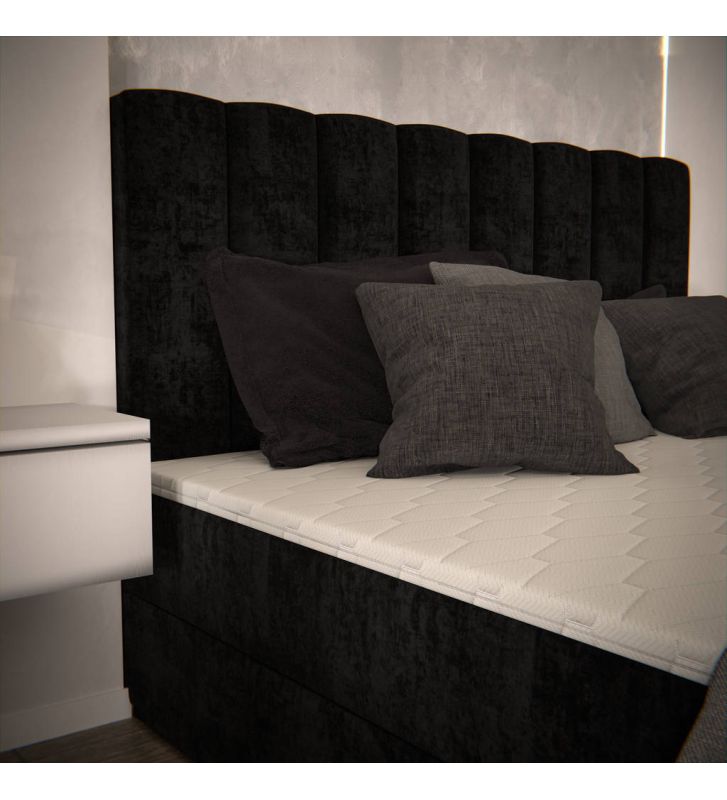 Łóżko kontynentalne, z dwoma pojemnikami, materacem i topperem Bergamo Plus 140x200 Czarne