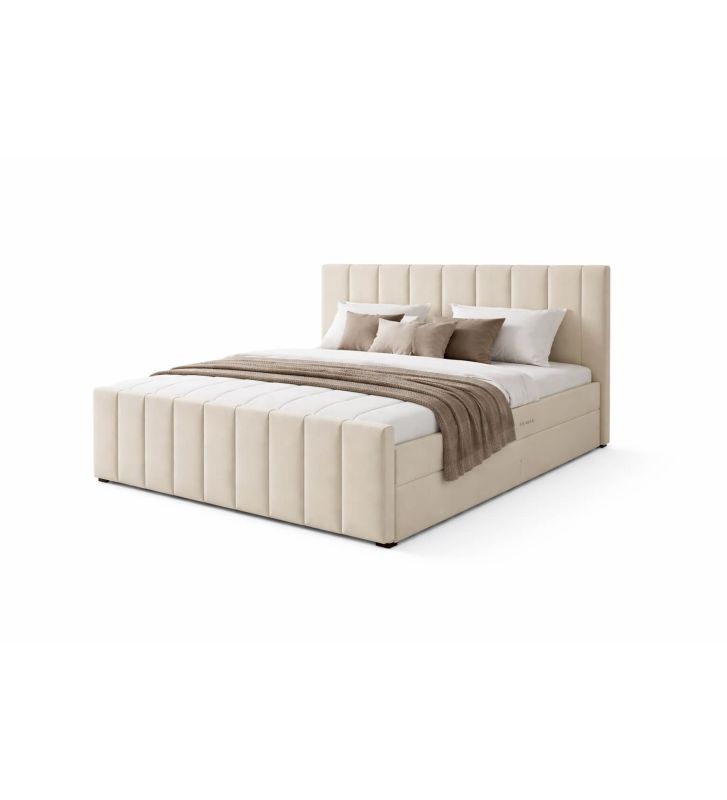Łóżko kontynentalne, z dwoma pojemnikami, materacem i topperem Bergamo Plus 140x200 Beżowe