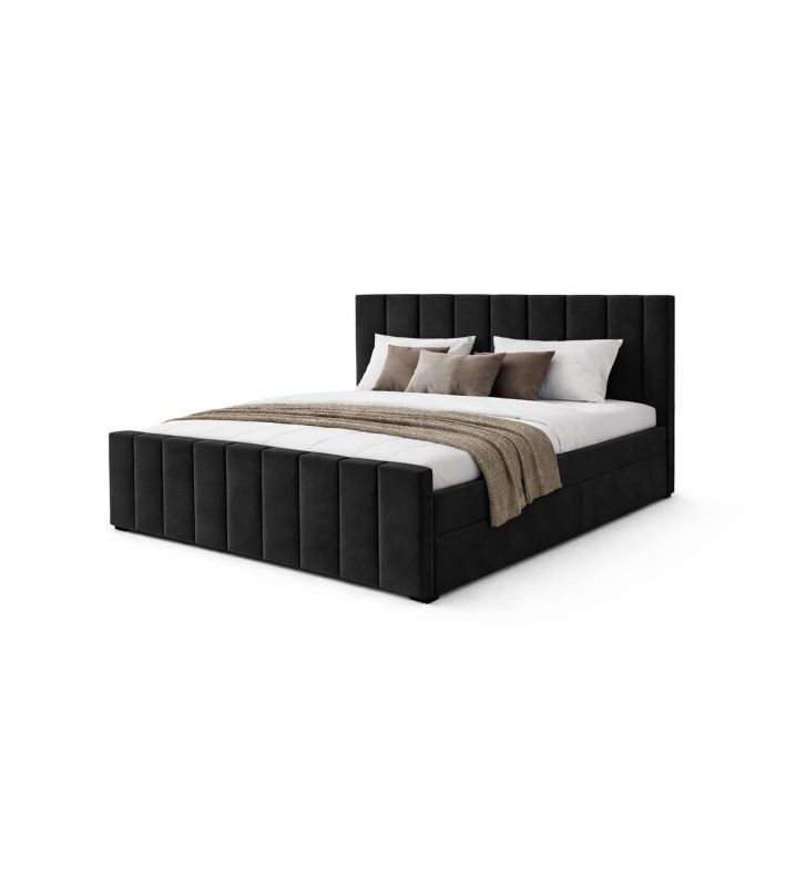 Łóżko kontynentalne, z dwoma pojemnikami, materacem i topperem Bergamo Plus 120x200 Czarne