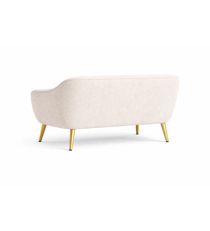 Sofa dwuosobowa Livo to elegancki i nowoczesny mebel wypoczynkowy z tej samej kolekcji co fotel Livo. Miękka tkanina boucle, zaokrąglona forma oraz lekkie, stylowe nóżki tworzą spójną i efektowną całość, która świetnie prezentuje się w salonie, sypialni, gabinecie, recepcji lub strefie lounge.